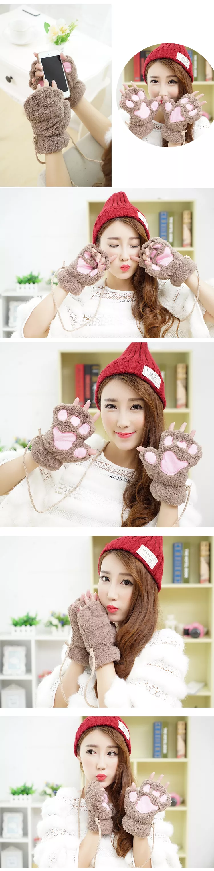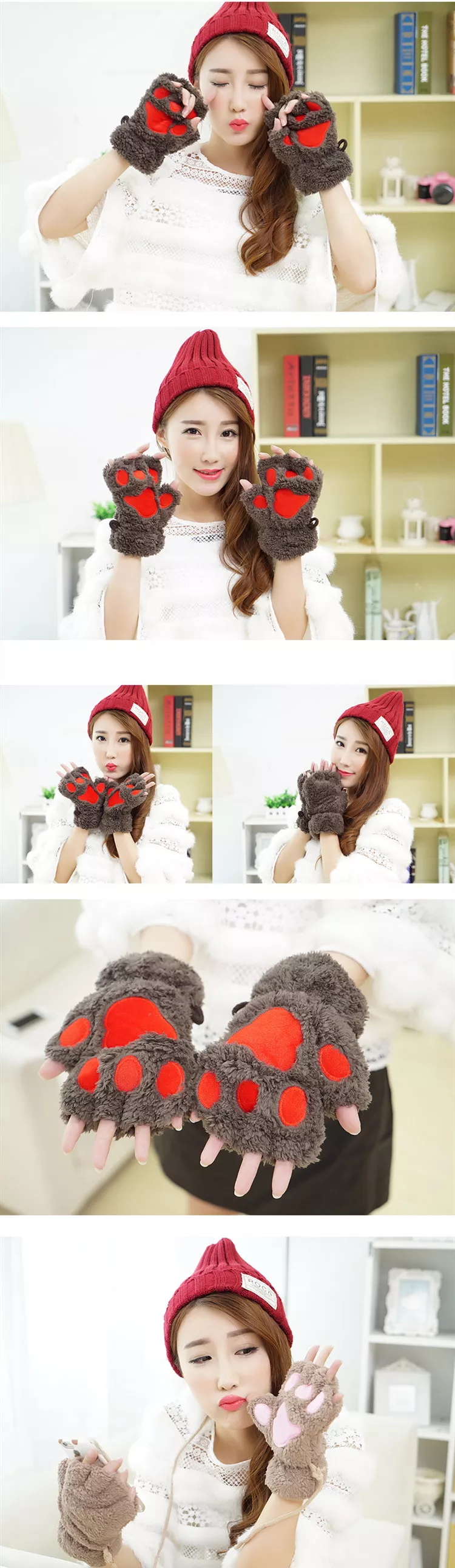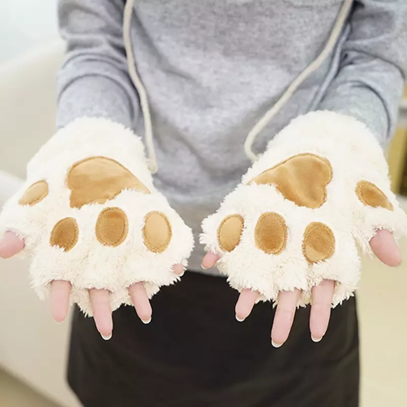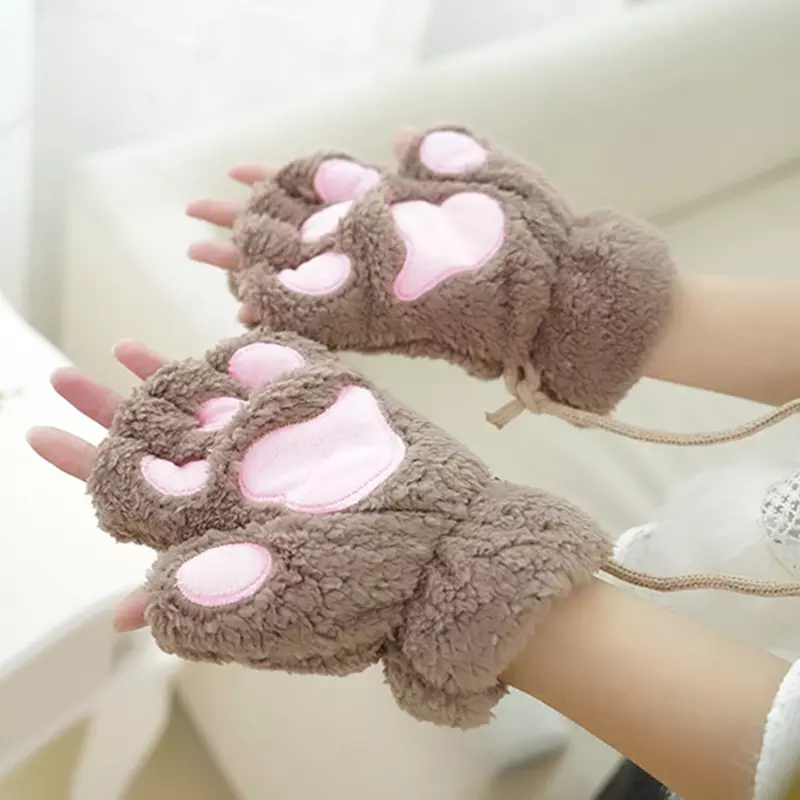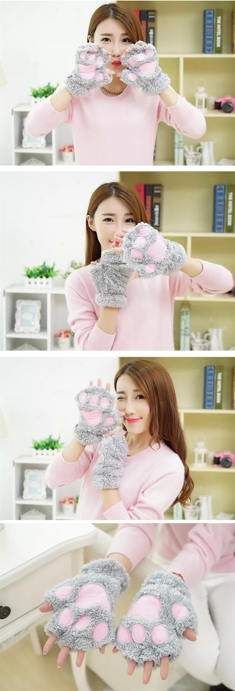 귀여운 고양이 발바닥 모양의 하프 벙어리 장갑.
