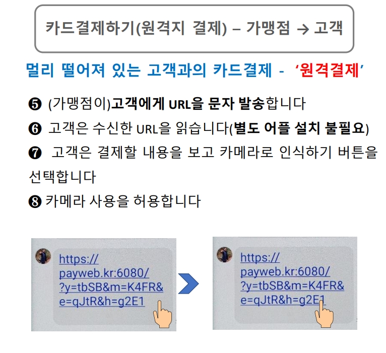 결재는 오직 전화번호와 고객님 성함만으로 URL 결재 요청 메시지 전달카드