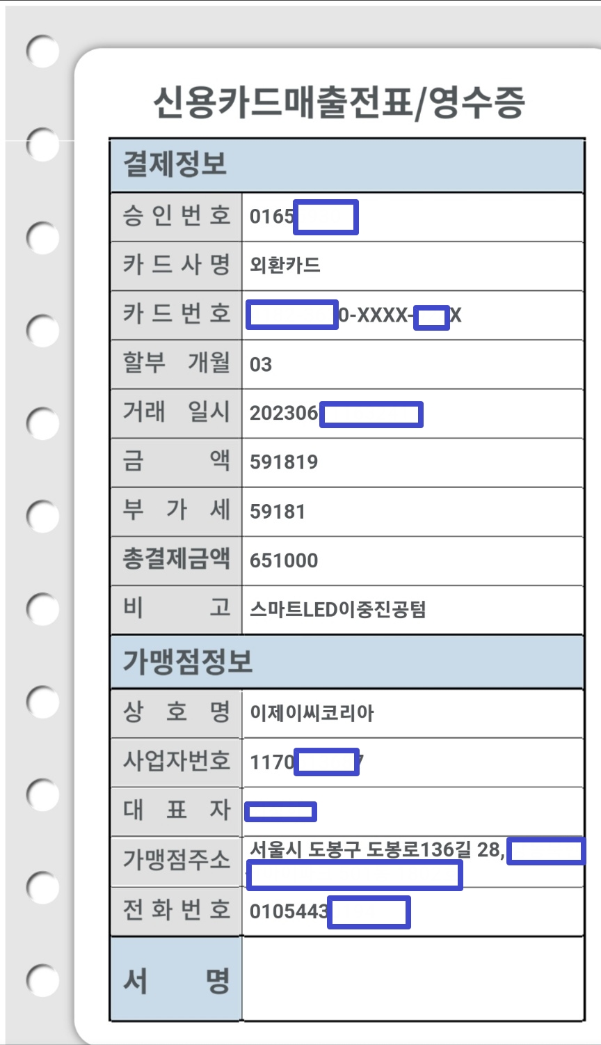 ⓔ순서대로 내용(제품, 금액)확인하시고 ---> 결재 ---> 영수증은 메시지, 카카오톡, 사진으로 전송받음.