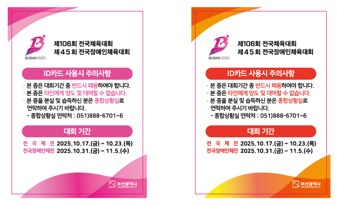 경주에서 개최하는 'APEC 2025 정상회의', 부산에서 개최되는 '제106회 전국체육대회'와 '제45회 전국장애인체육대회'등 많은 축제, 문화제, 대회 명찰. 행사용품들을 턴키로 납품해 드려요.