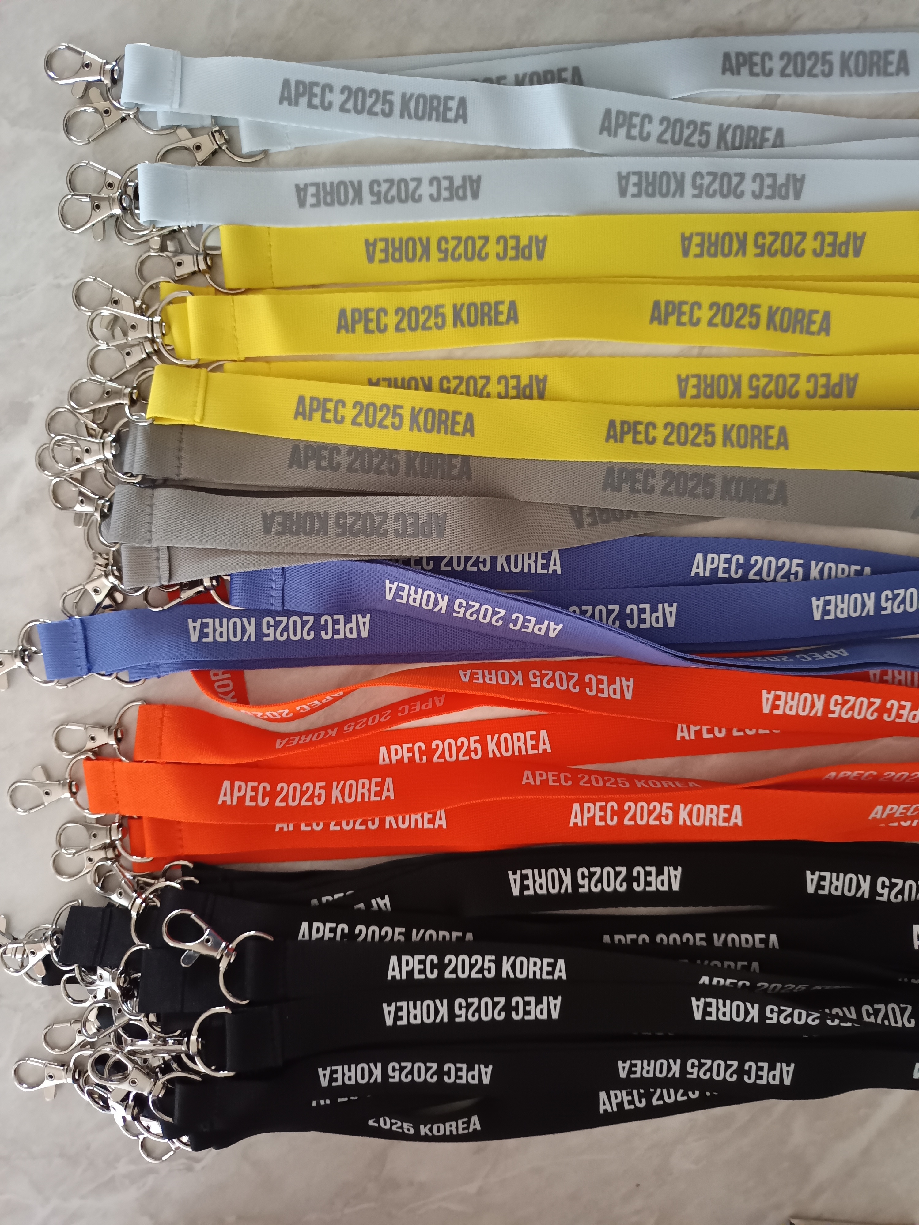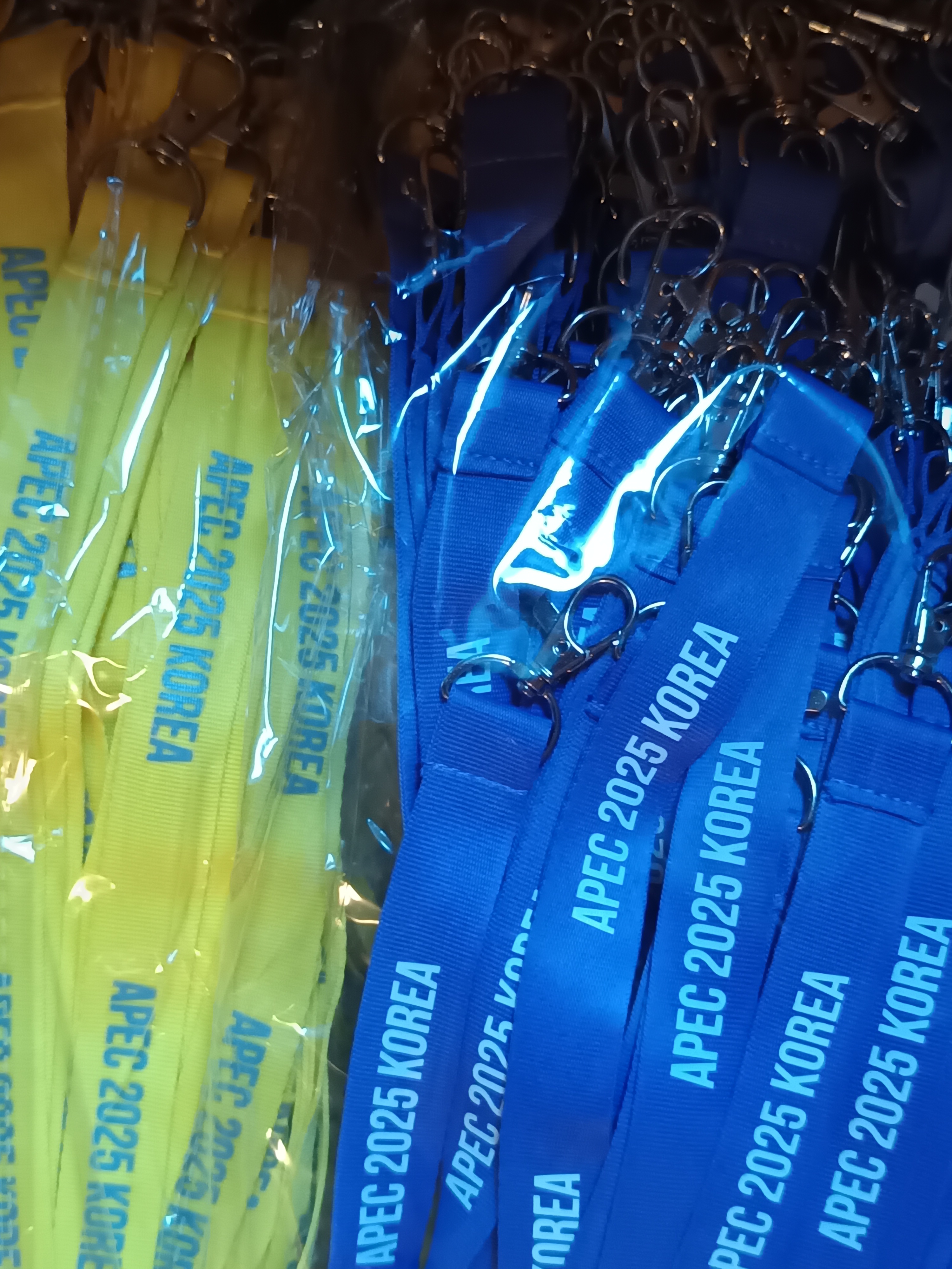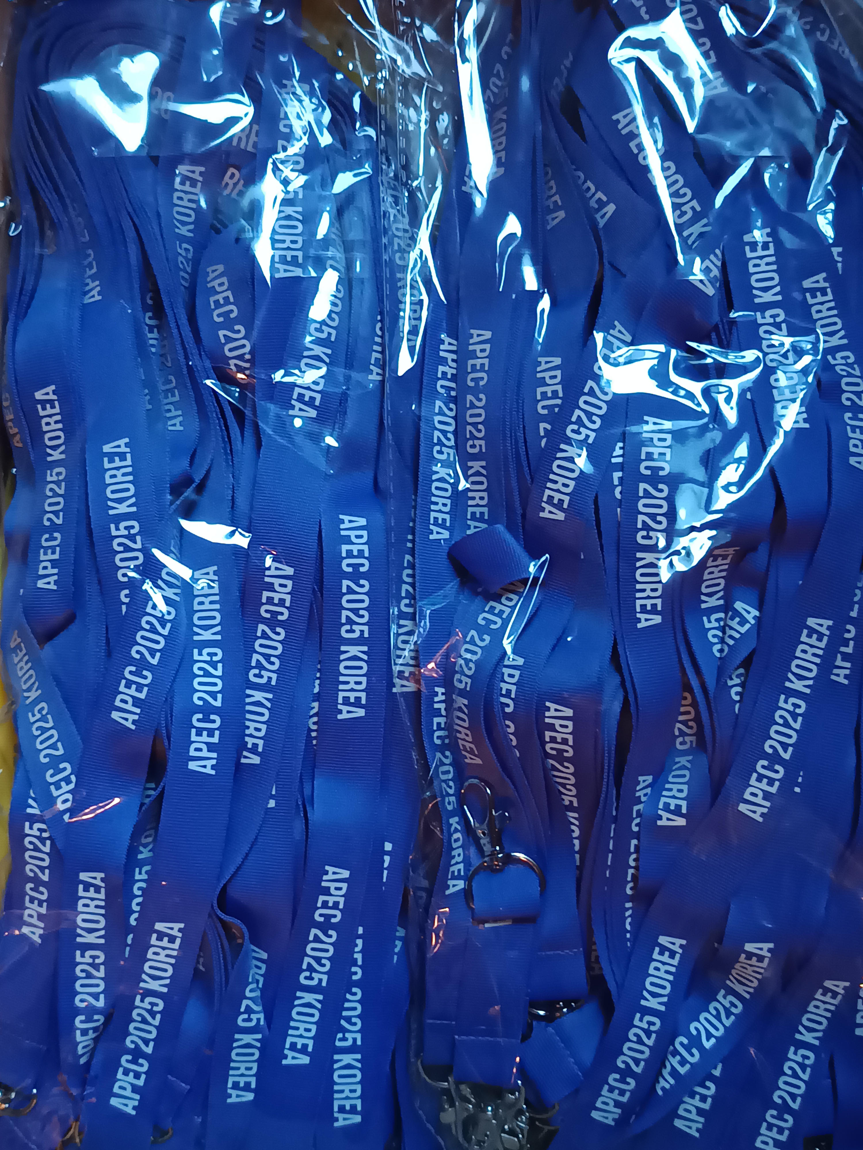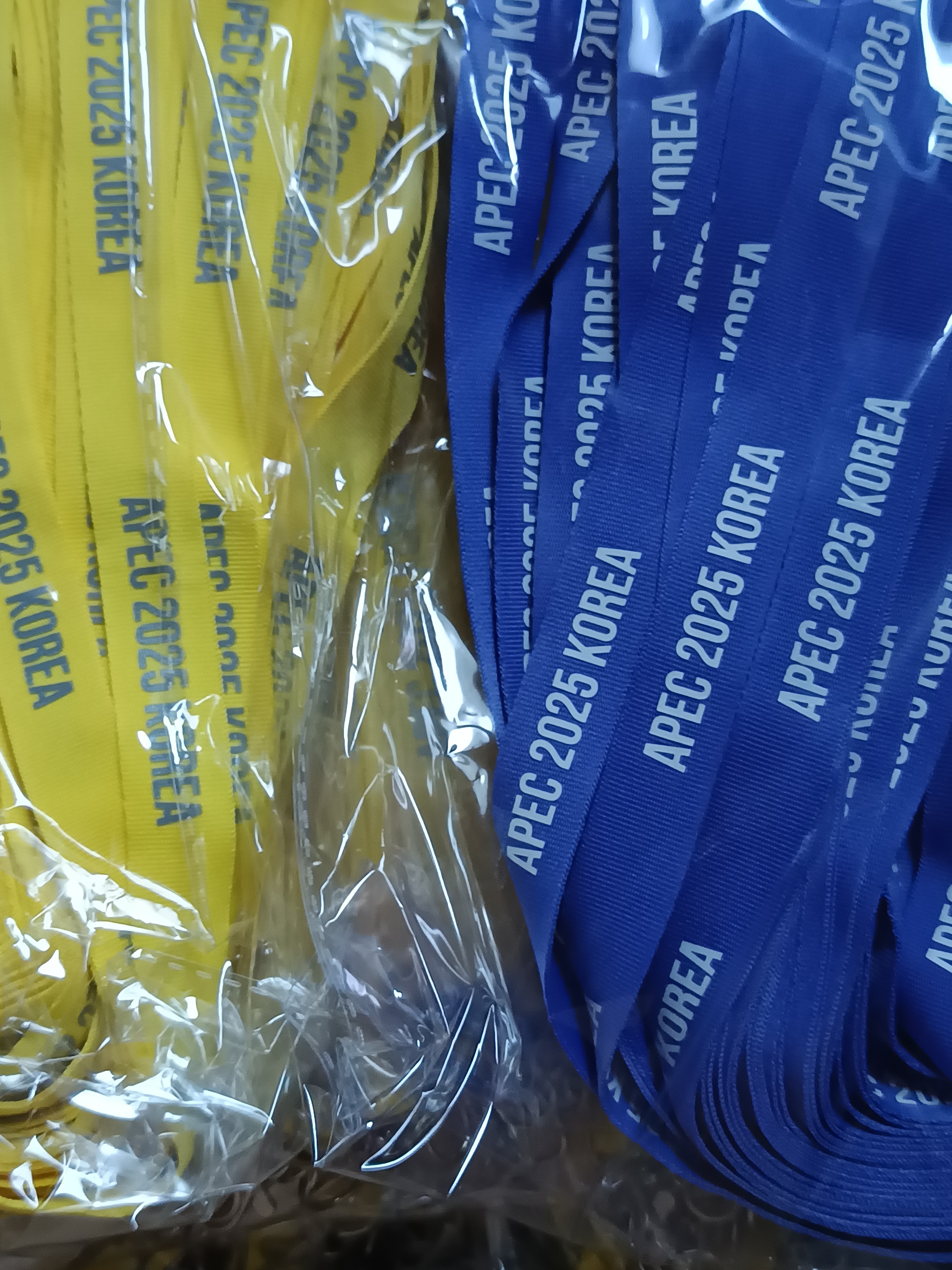젠슨황도 참석하는 '경주 2025 APEC' APEC 참가 인원이 막판 더 증가하는지 명찰 목걸이줄 5차 추가 발주. 어제 확정. 아래 명찰줄과 동일 소재로 가장 빠르게 제작하기로 결정.