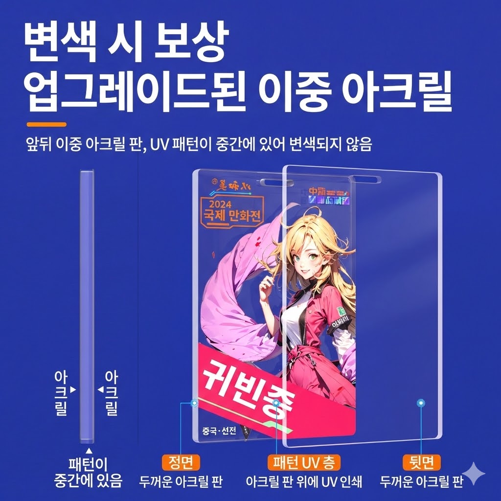이중 아크릴 안에 uv인쇄된 앞.뒤 이중 아크릴 판 중간에 인쇄함으로 더 고품질 OK! ↓