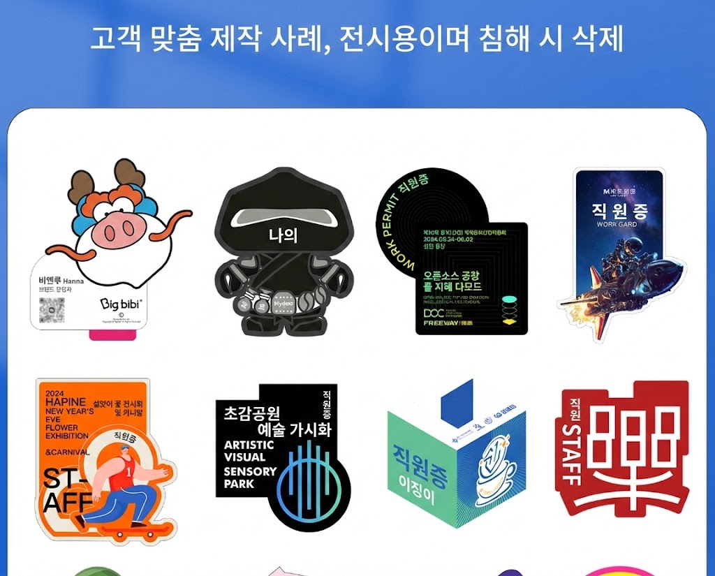 일반적인 사원증은 시간이 지나면 인쇄가 벗겨지거나 변색되기 쉽습니다. 하지만 이곳의 제품은 기술부터 다릅니다.