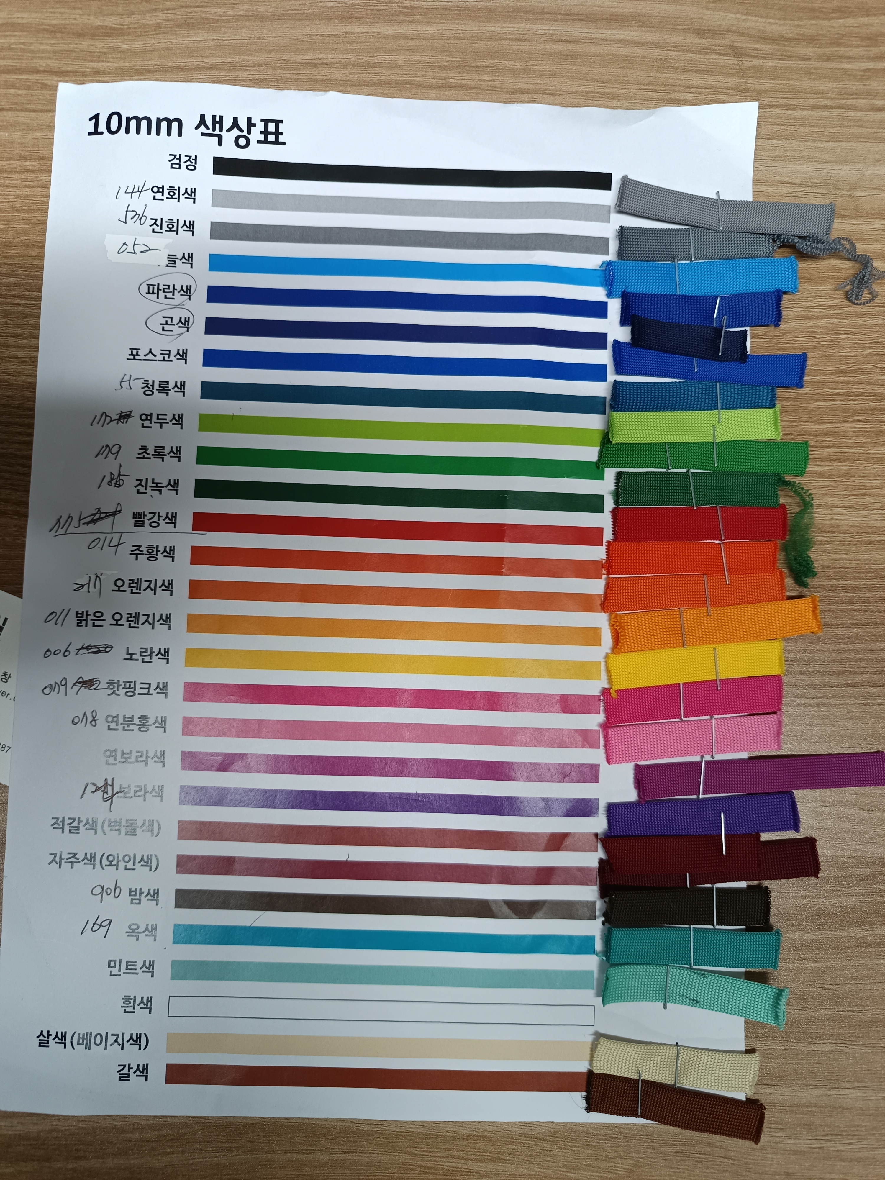 * **다양한 컬러 스펙트럼**: 10mm 컬러 스티치 색상표에서 보시는 것처럼, 100여 가지에 가까운 다양한 색상 조합이 가능하여 어떤 브랜드 컬러도 완벽하게 매치할 수 있습니다.